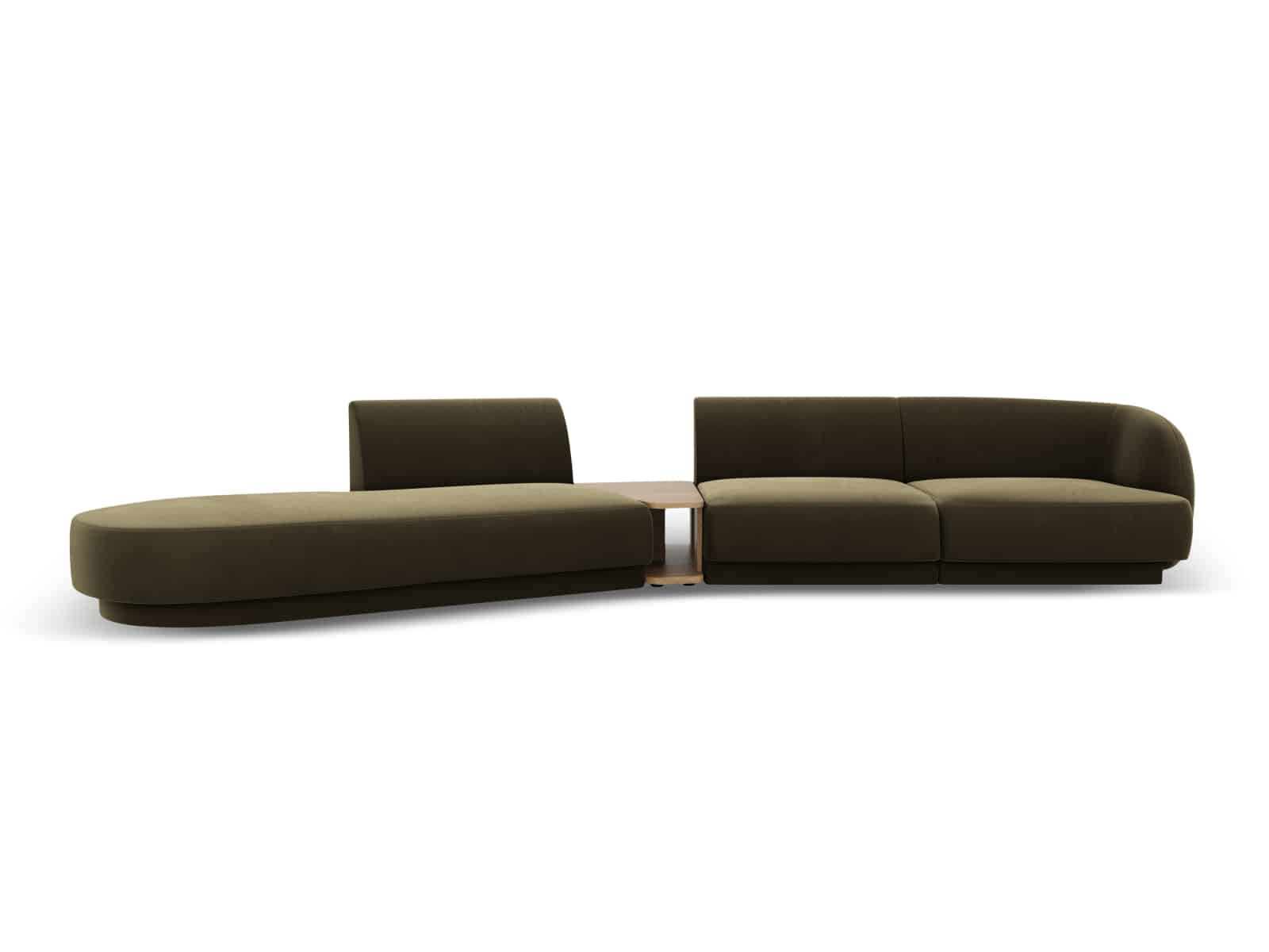 Miley 4-personers modulsofa er kendetegnet ved sin buede form og sofabord, som vil være praktisk som et perfekt sted til snacks.